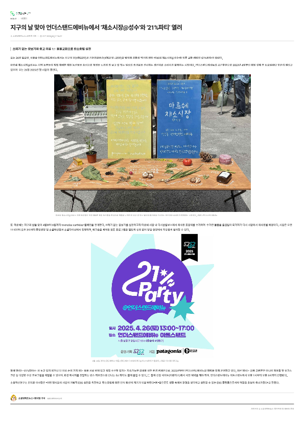 ¾ð´õ½ºÅĵ忡ºñ´º "Áö±¸ÀÇ ³¯ ¸Â¾Æ ¾ð´õ½ºÅĵ忡ºñ´º¿¡¼ ¡®Ã¤¼Ò½ÃÀå@¼º¼ö¡¯¿Í ¡®21%ÆÄƼ¡¯ ¿·Á" ±â»ç°¡
